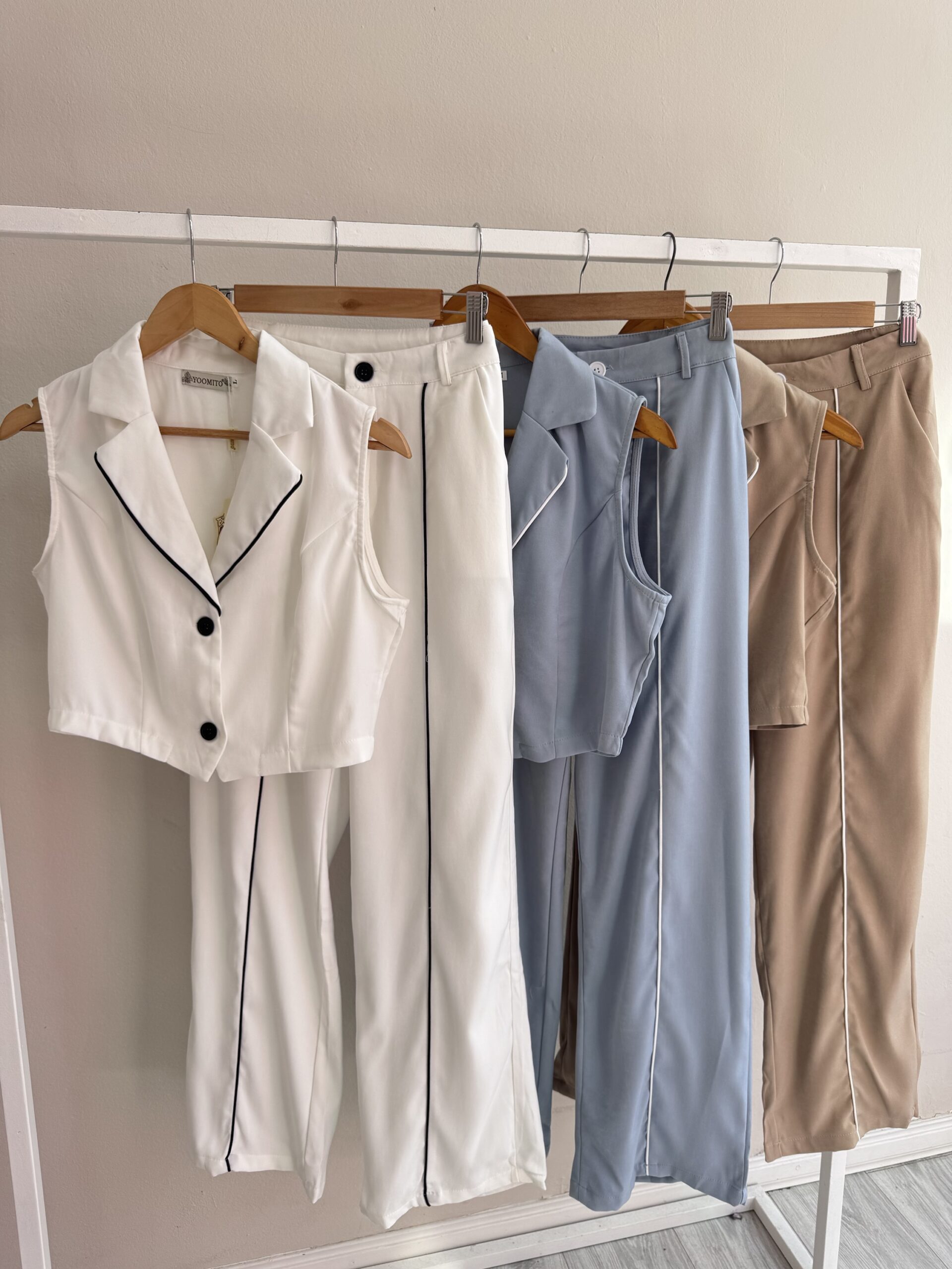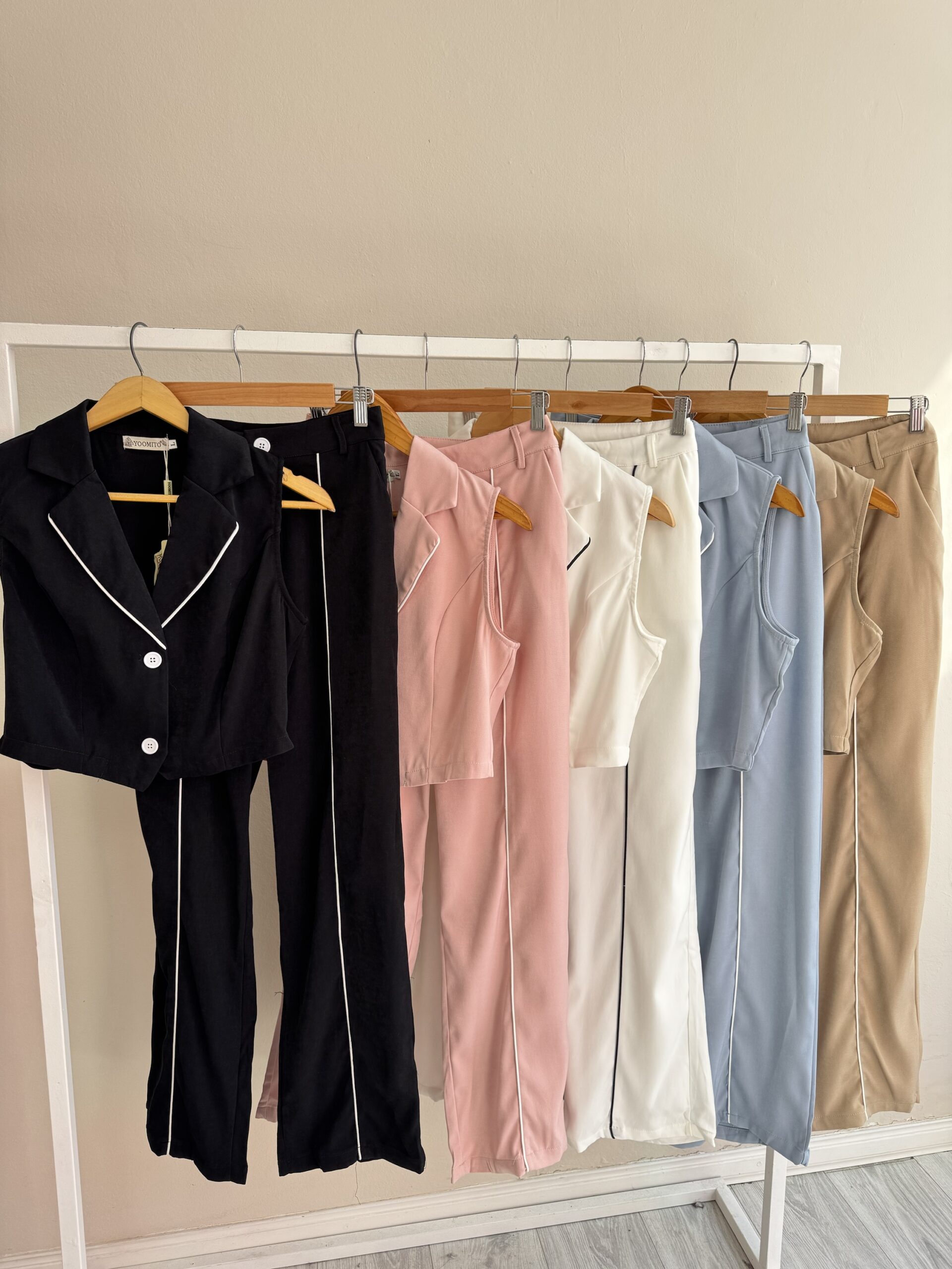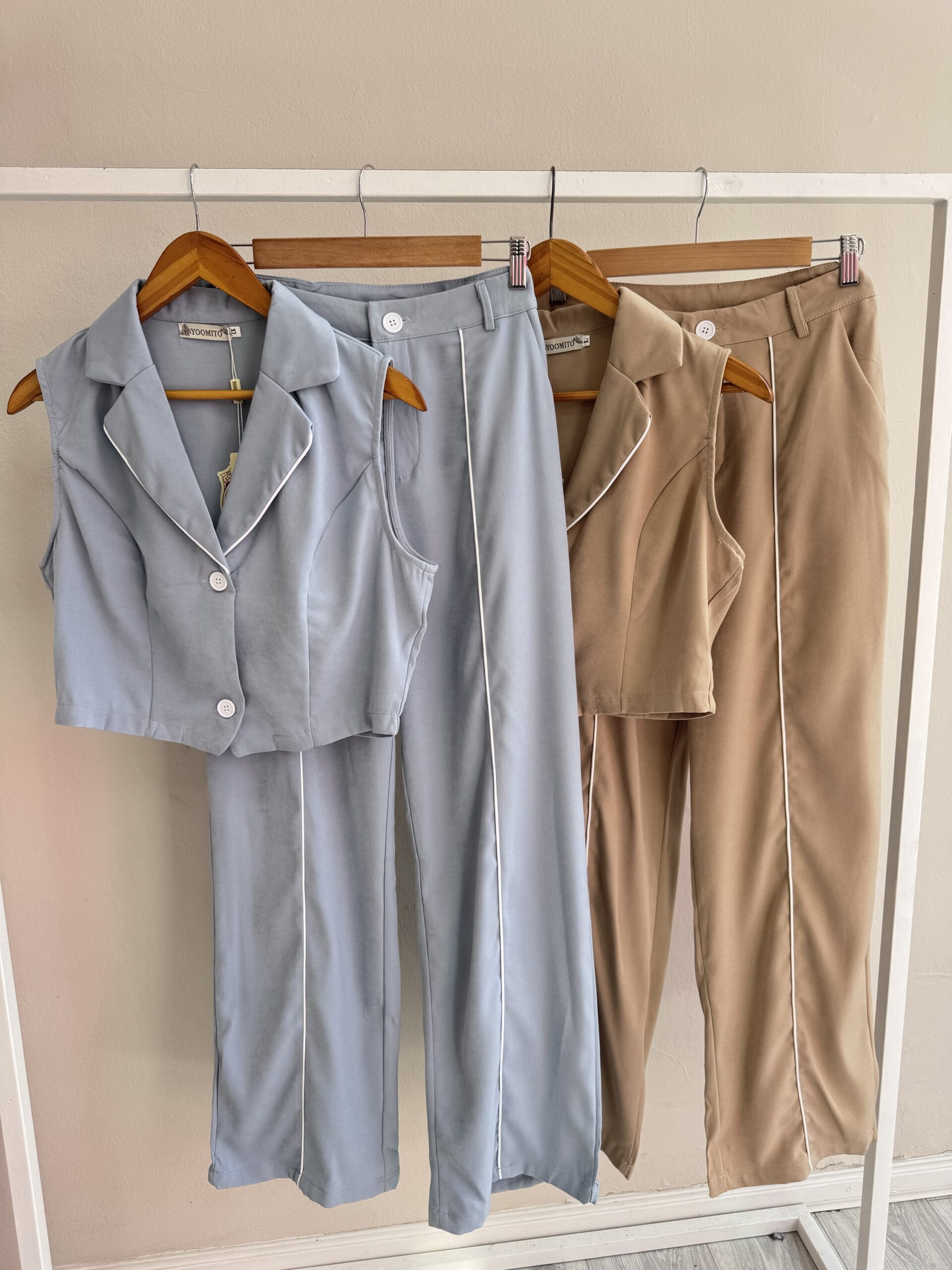 Conjunto de chaleco + pantalón sastrero importado. Excelente calce. Semi elastizado.