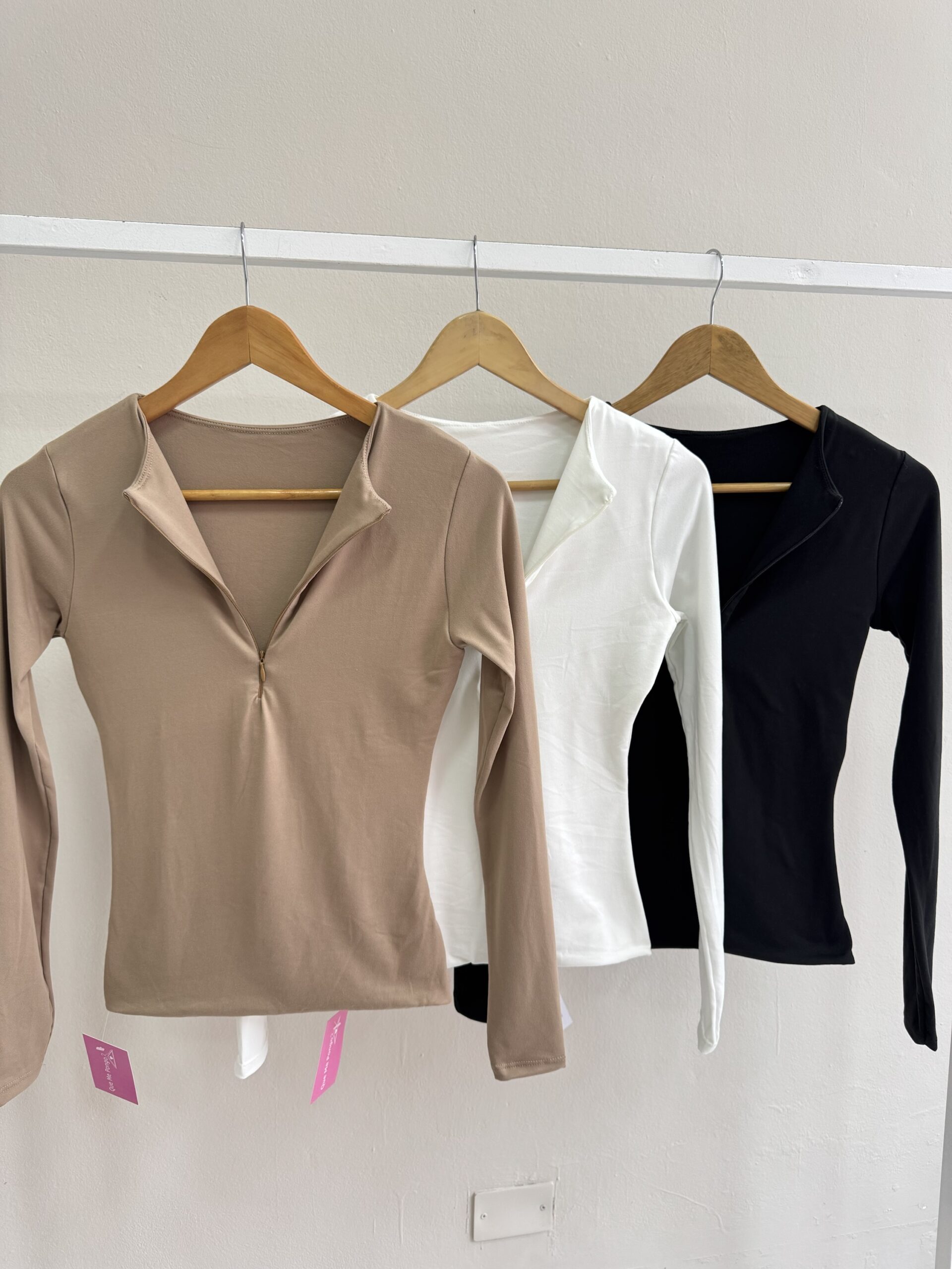 Remera de modal soft doble, con cierre, entallada. Adapta hasta talle 2.