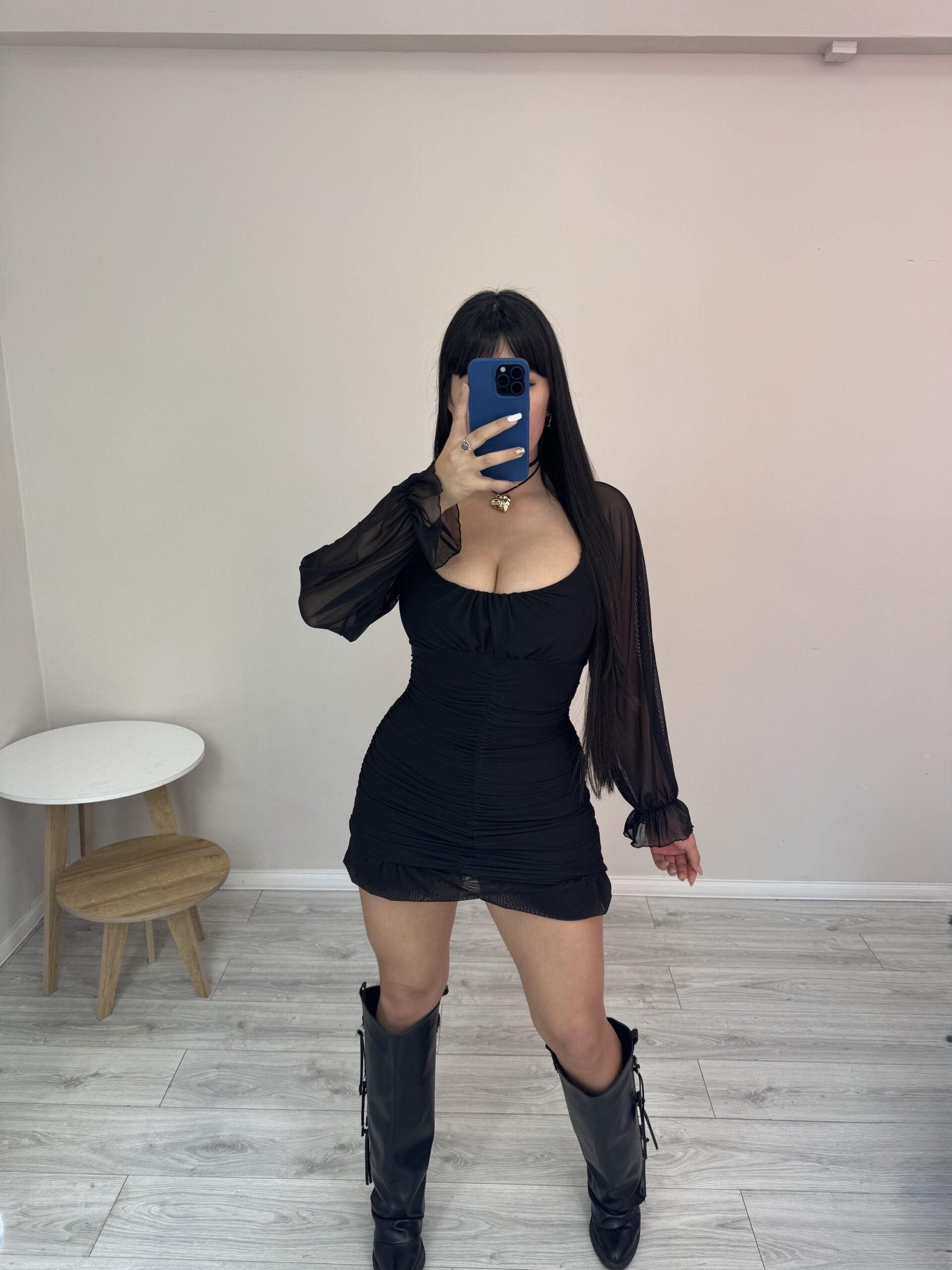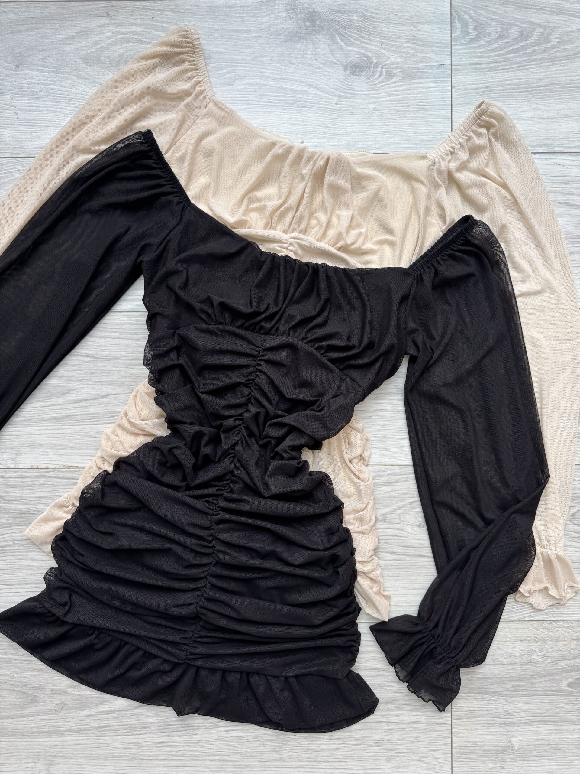 Vestido de micro tul elastizado, con forro. Adapta hasta talle 3.