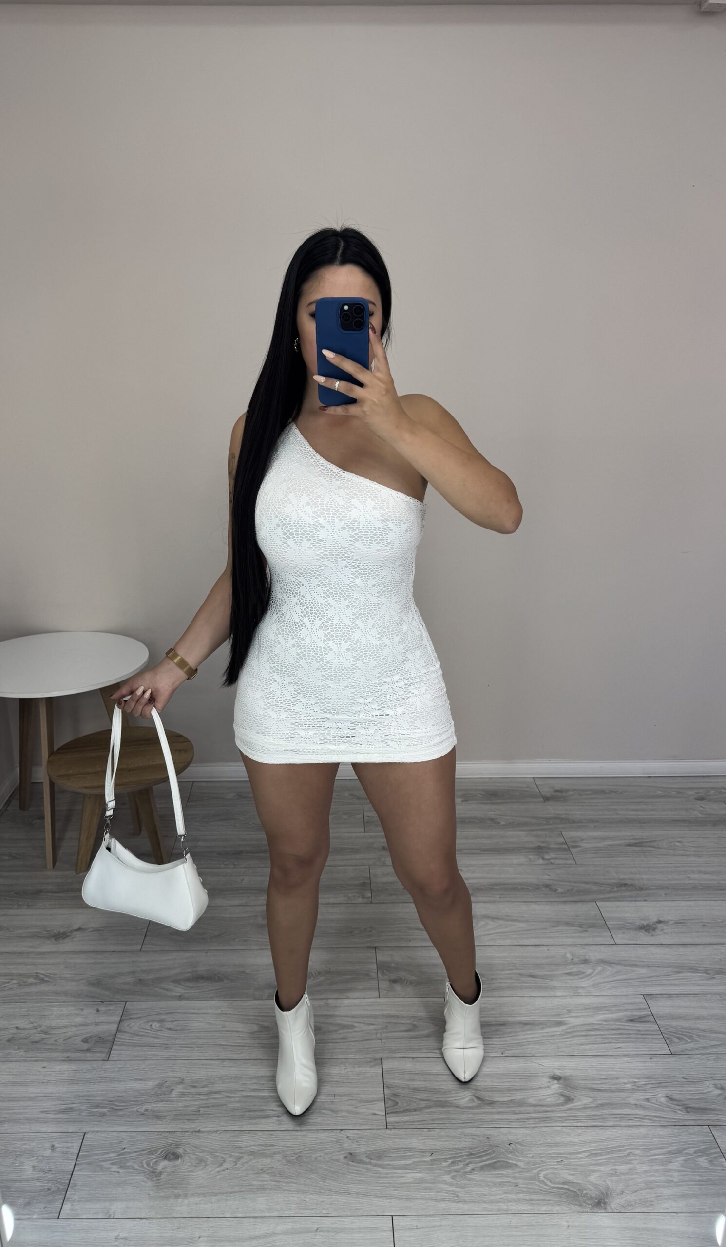 Vestido de broderie elastizado con forro. Abarca hasta talle 2.